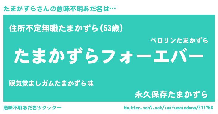 | 男性向けラノベタイトル風あだ名 | 『うちのたまかずらが世界を掌握している!』 |
