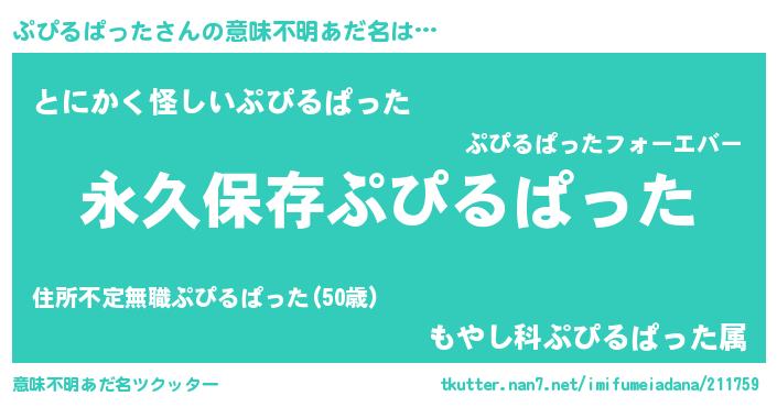 | 胡散臭い通販商品みたいなあだ名 | 『絶対に幸福をもたらす水素水…その名も「ぷぴるぱった」』 |