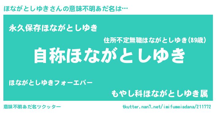 | 肩書あだ名 | 『ほながとしゆき閣下』 |