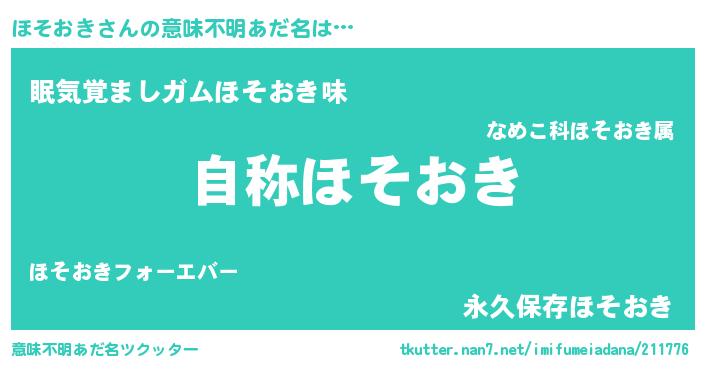 | ヘコむあだ名 | 『ほそおき(爆)』『酢こんぶ』 |