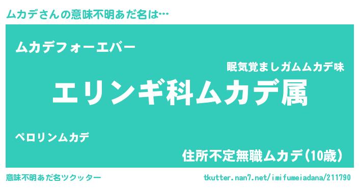 | ヒーロー風カッコイイあだ名 | 『ウルトラムカデマン』『仮面ムカダー』 |