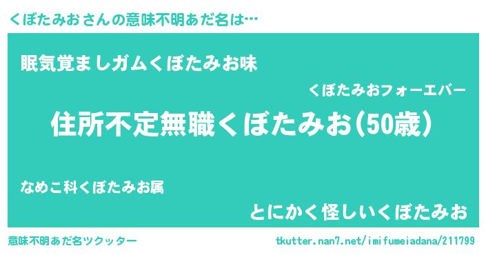 | 男性向けラノベタイトル風あだ名 | 『くぼたみおに滅ぼされるだけの簡単なお仕事です』 |