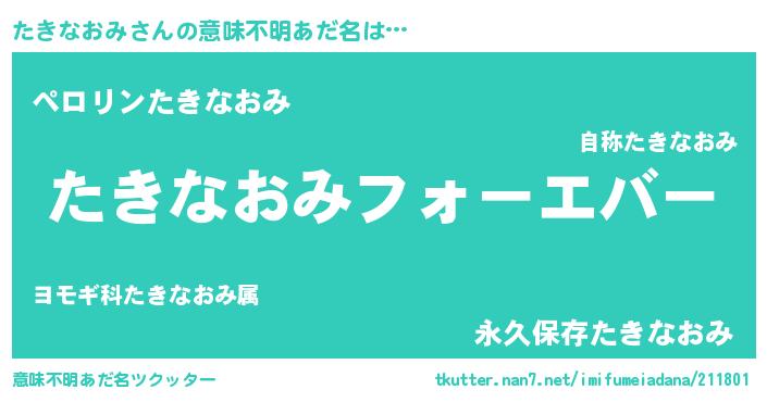 | 男性向けラノベタイトル風あだ名 | 『やはりたきなおみの青春ラブコメはまちがっている 』 |
