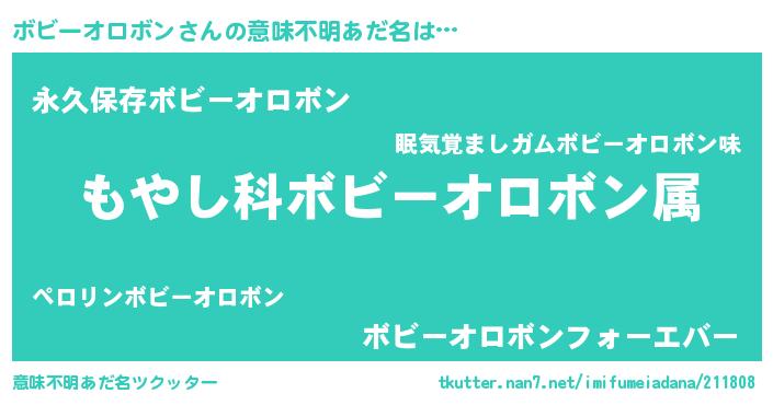 | 男性向けラノベタイトル風あだ名 | 『転生したらボビーオロボンだった件』 |