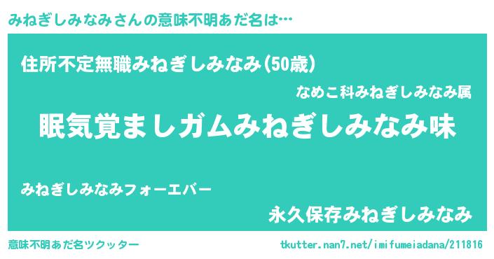 みねぎしみなみさんの意味不明あだ名をツクッター!