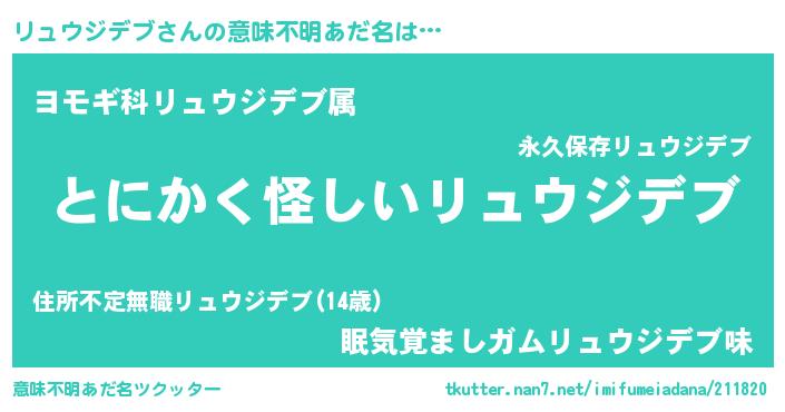 | 男性向けラノベタイトル風あだ名 | 『リュウジデブの嫁は女の子じゃないと思った?』 |