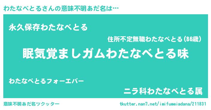 | 女子向けラノベタイトル風あだ名 | 『わたなべとる恋絵巻』 |