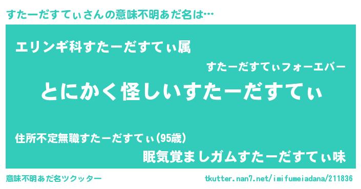 | ピコ太郎風あだ名 | 『スタ一郎』『スス太郎』『ピス四郎』 |