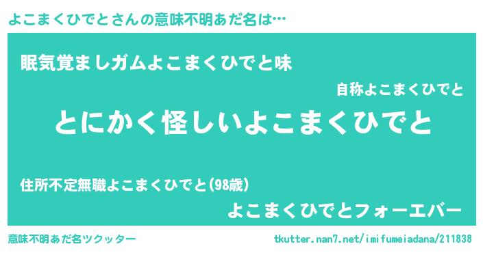 | 胡散臭い通販商品みたいなあだ名 | 『伝統あるサプリメント…その名も「よこまくひでと」』 |