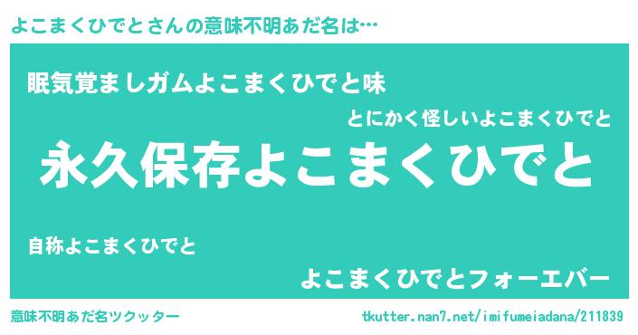 | 女子向けラノベタイトル風あだ名 | 『異世界でカフェよこまくひでとを開店しました。』 |