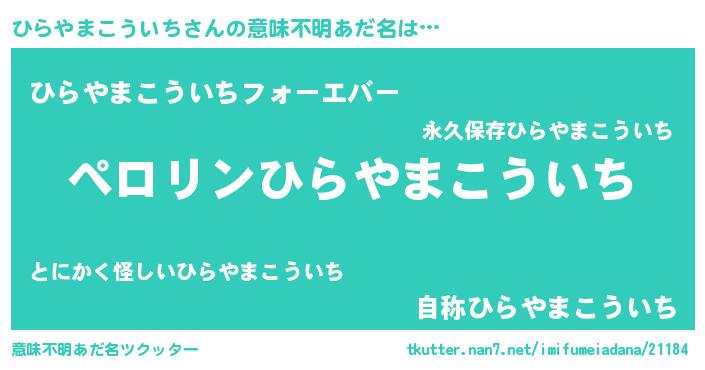 | ヒーロー風カッコイイあだ名 | 『スーパーヒラヤマコウイチ』 |