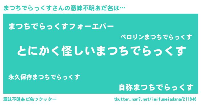 | 欧米人風あだ名 | 『ウサインまつちでらっくす』 |