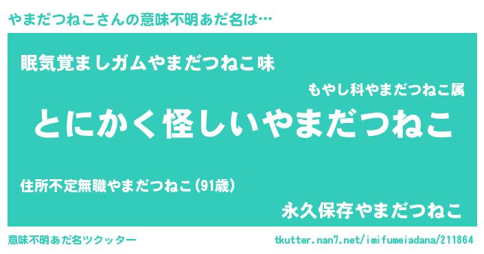 | ポケモン風あだ名 | 『ヒヤマダツネコ』『ヤックウザ』 |