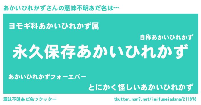 | ヘコむあだ名 | 『あかいひれかず(苦笑)』『あかっちょ』 |