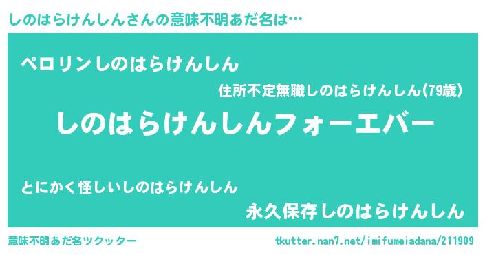 | 男性向けラノベタイトル風あだ名 | 『やはりしのはらけんしんの青春ラブコメはまちがっている 』 |