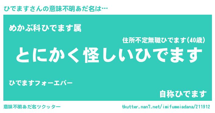 | 胡散臭い通販商品みたいなあだ名 | 『伝統あるサプリメント…その名も「ひでます」』 |