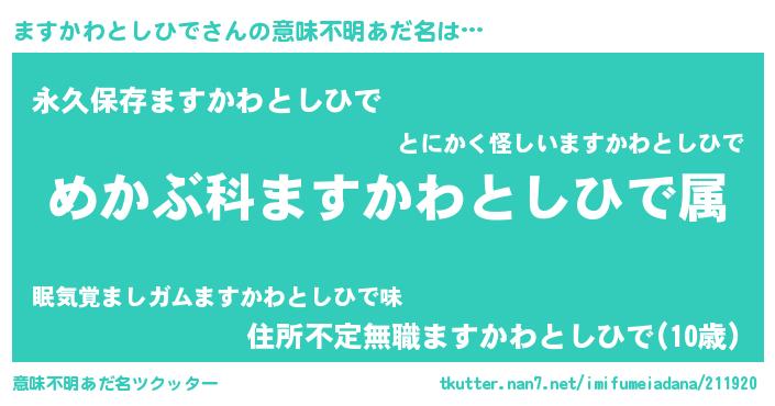 | 胡散臭い通販商品みたいなあだ名 | 『絶対に幸福をもたらす健康食品…その名も「ますかわとしひで」』 |