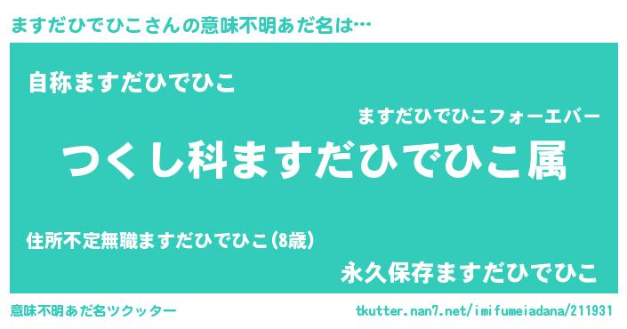 | 女子向けラノベタイトル風あだ名 | 『ますだひでひこの玉の輿計画!』 |