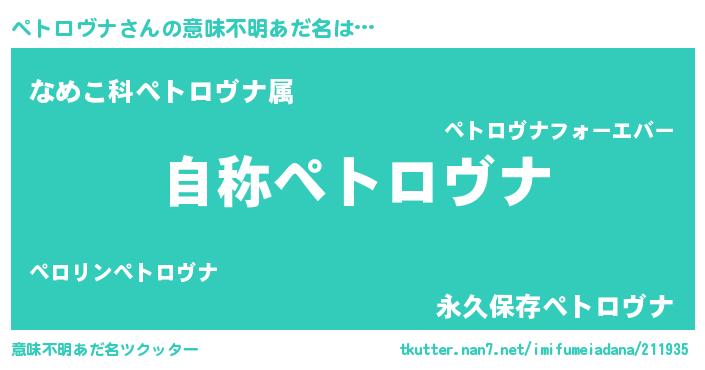 | 女子向けラノベタイトル風あだ名 | 『ペトロヴナなんてお断りですっ。』 |