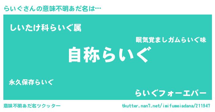 | ヘコむあだ名 | 『豆乳』『らいぐ(震え声)』 |