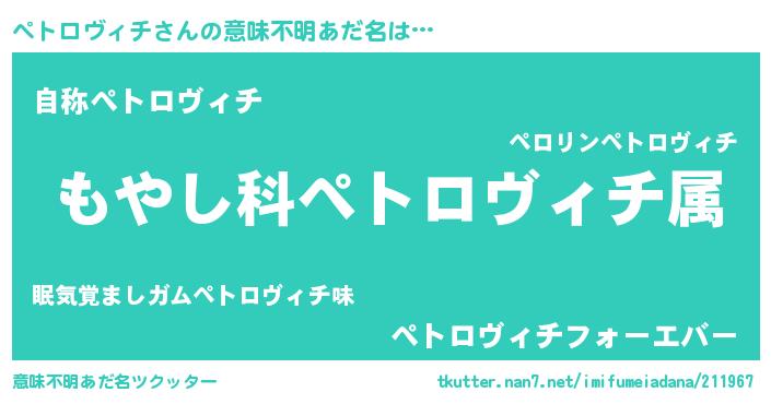 | 胡散臭い通販商品みたいなあだ名 | 『テレビで話題のアガリクス…その名も「ペトロヴィチ」』 |