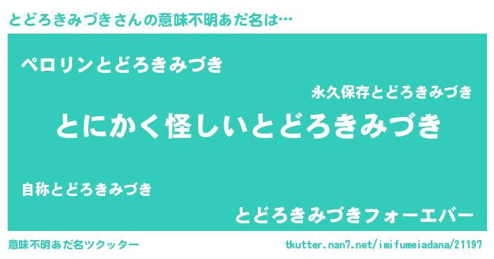 | ポケモン風あだ名 | 『ヒトドロキミヅキ』『トドチュウ』 |