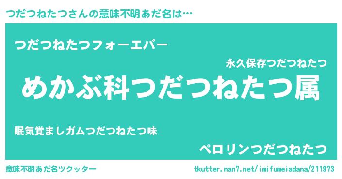 | 欧米人風あだ名 | 『トリンドルつだつねたつ』 |