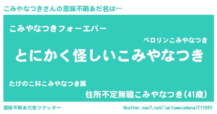 | 胡散臭い通販商品みたいなあだ名 | 『伝統あるサプリメント…その名も「こみやなつき」』 |