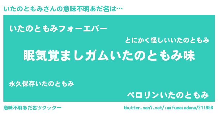 | 料理風あだ名 | 『いたのともみのトマト煮』 |