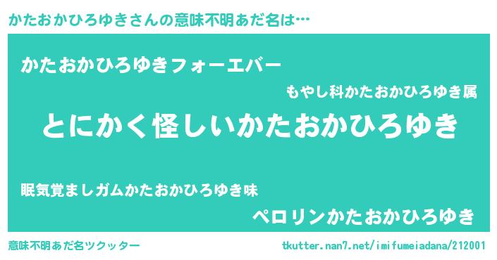 | ポケモン風あだ名 | 『ヒカタオカヒロユキ』『カタオダネ』 |
