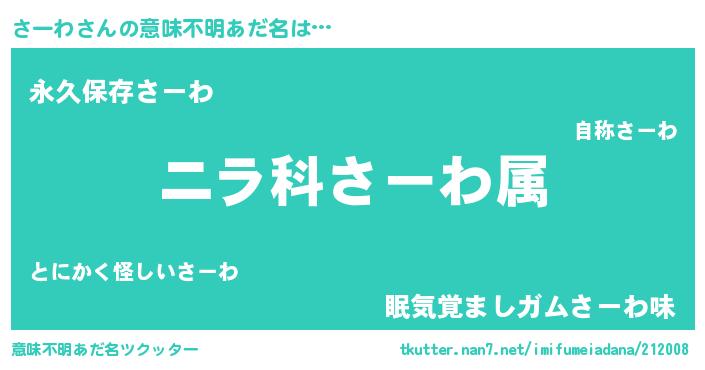 | ヒーロー風カッコイイあだ名 | 『ネオサーワ』『正義の使者さーわ』 |