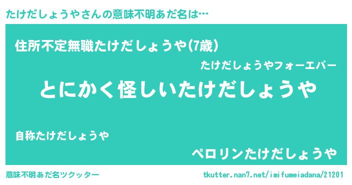 | ピコ太郎風あだ名 | 『タケ四郎』『タコ次郎』『ピタ四郎』 |