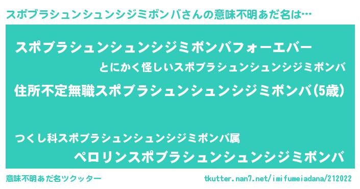 | 胡散臭い通販商品みたいなあだ名 | 『世界中を虜にした100年もののヴィンテージワイン…その名も「スポブラシュンシュンシジミボンバ」』 |