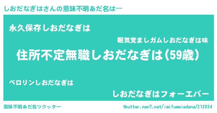 | 欧米人風あだ名 | 『ダレノガレしおだなぎは』 |