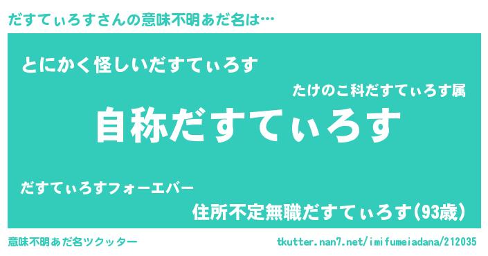 | 男性向けラノベタイトル風あだ名 | 『だすてぃろすに滅ぼされるだけの簡単なお仕事です』 |