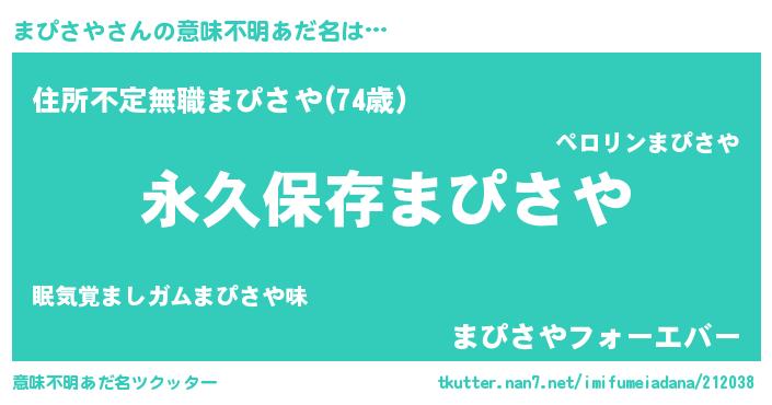 | ヘコむあだ名 | 『まぴさや(笑)』『なまこ酢』 |