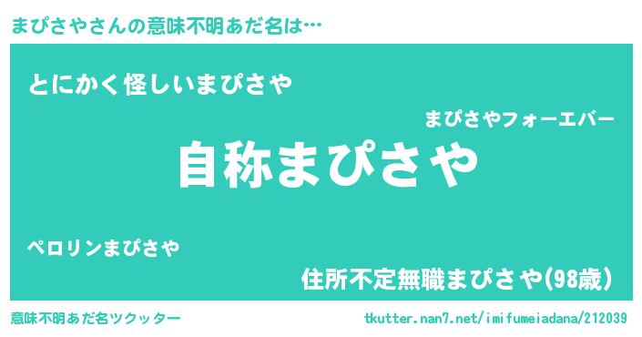 | 男性向けラノベタイトル風あだ名 | 『Re:まぴさやから始める異世界生活』 |