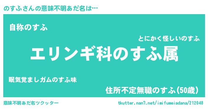 | 欧米人風あだ名 | 『アンジェラ・のすふ』『ウサインのすふ』 |