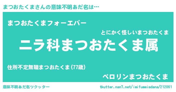 | 欧米人風あだ名 | 『トリンドルまつおたくま』 |