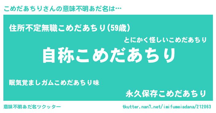 | 女子向けラノベタイトル風あだ名 | 『こめだあちりなんてお断りですっ。』 |