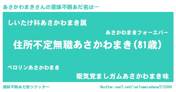 | 料理風あだ名 | 『あさかわまきのカルパッチョ風』 |