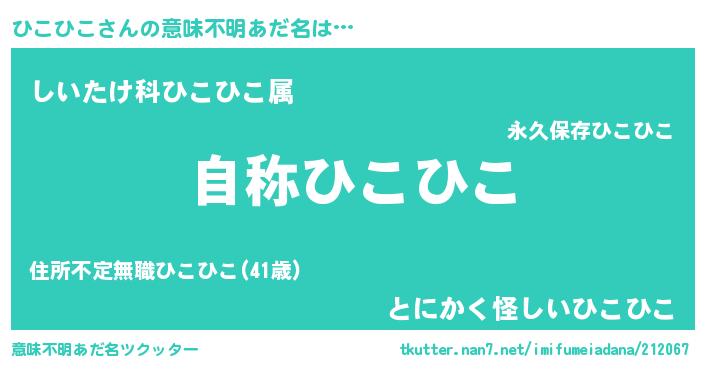 | ヒーロー風カッコイイあだ名 | 『サイバー戦士ヒコヒコ』『黄金騎士ヒコ』 |