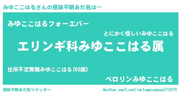 | 胡散臭い通販商品みたいなあだ名 | 『幸せが訪れる高級そうな絵画…その名も「みゆここはる」』 |