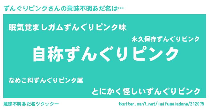 | 男性向けラノベタイトル風あだ名 | 『Re:ずんぐりピンクから始める異世界生活』 |
