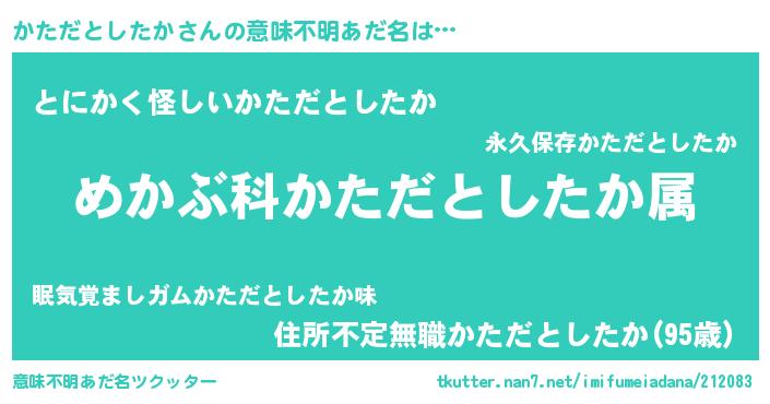 | 欧米人風あだ名 | 『アンジェラ・かただとしたか』 |