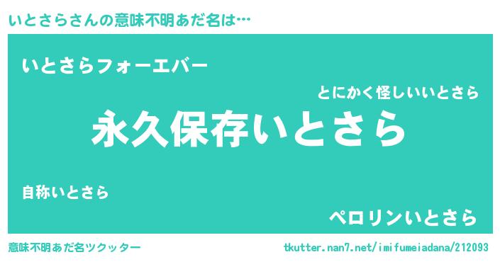 | ヒーロー風カッコイイあだ名 | 『ネオイトサラ』『ウルトラいとさらマン』 |