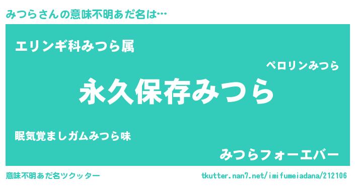 | ヘコむあだ名 | 『みつら(笑)』『牛乳』『みつもー』 |