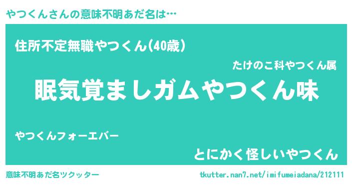 | 男性向けラノベタイトル風あだ名 | 『ノーゲーム・ノーヤツクン』 |
