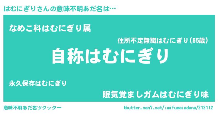 | 胡散臭い通販商品みたいなあだ名 | 『ガンによく効く高麗人参…その名も「はむにぎり」』 |