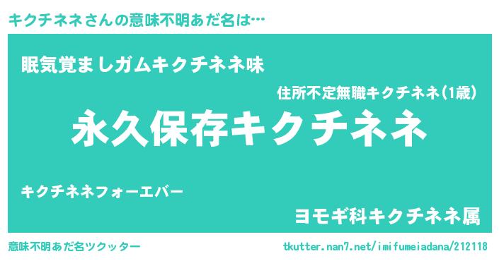 | 胡散臭い通販商品みたいなあだ名 | 『絶対に幸福をもたらす水素水…その名も「キクチネネ」』 |